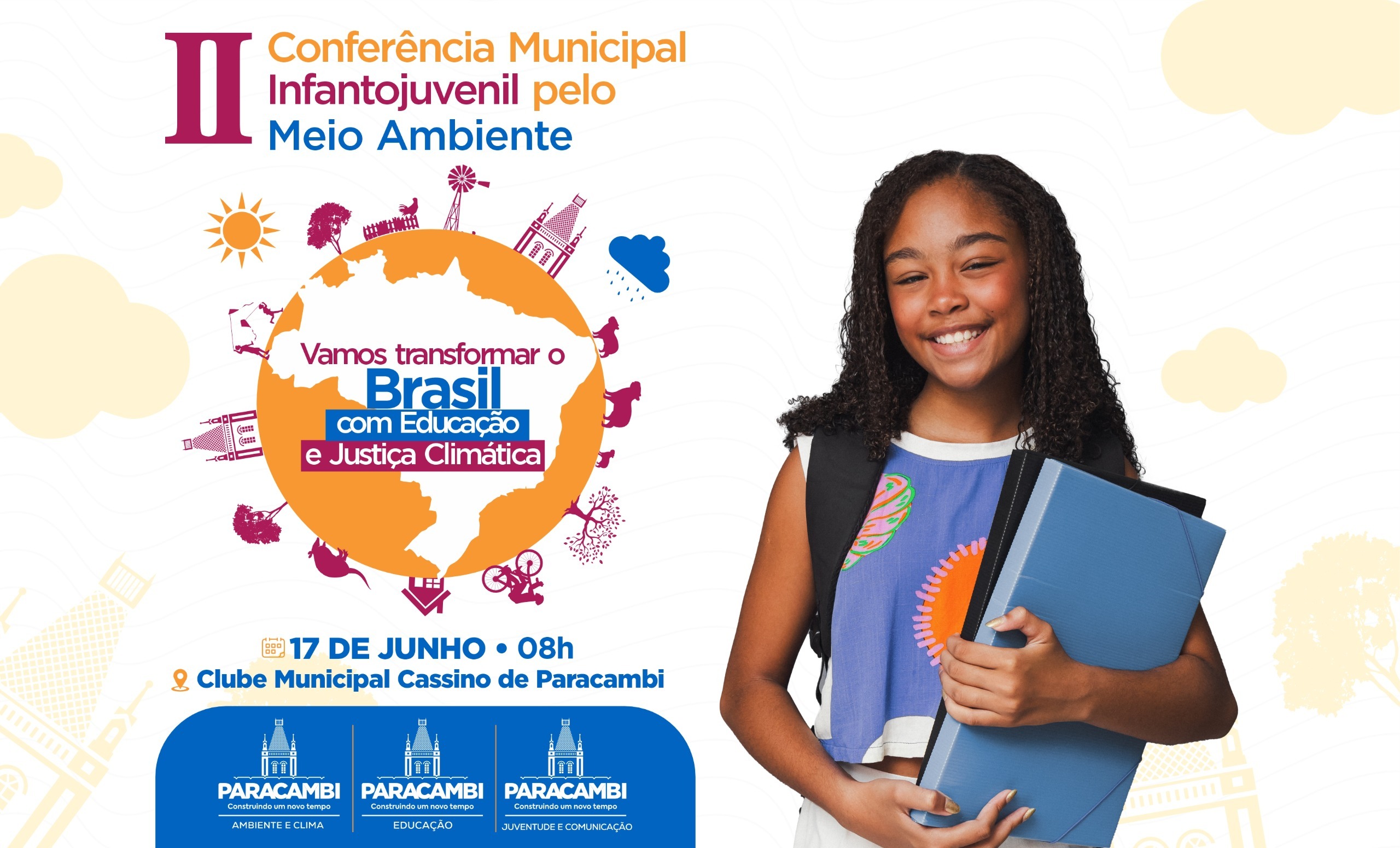 No dia 17 de junho, alunos da rede municipal de educação de Paracambi irão participar da II Conferência Municipal Infantojuvenil pelo Meio Ambiente (CMIJMA). A atividade acontecerá no Clube Municipal Cassino, a partir das 8h. Neste ano, o tema da conferência é “Vamos Transformar o Brasil com Educação e Justiça Climática”.