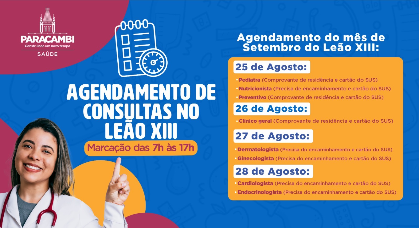 A Prefeitura de Paracambi, por meio da Secretaria Municipal de Saúde, informa as datas e especialidades disponíveis para agendamento de consultas no Posto de Saúde Leão XIII, em Lages.