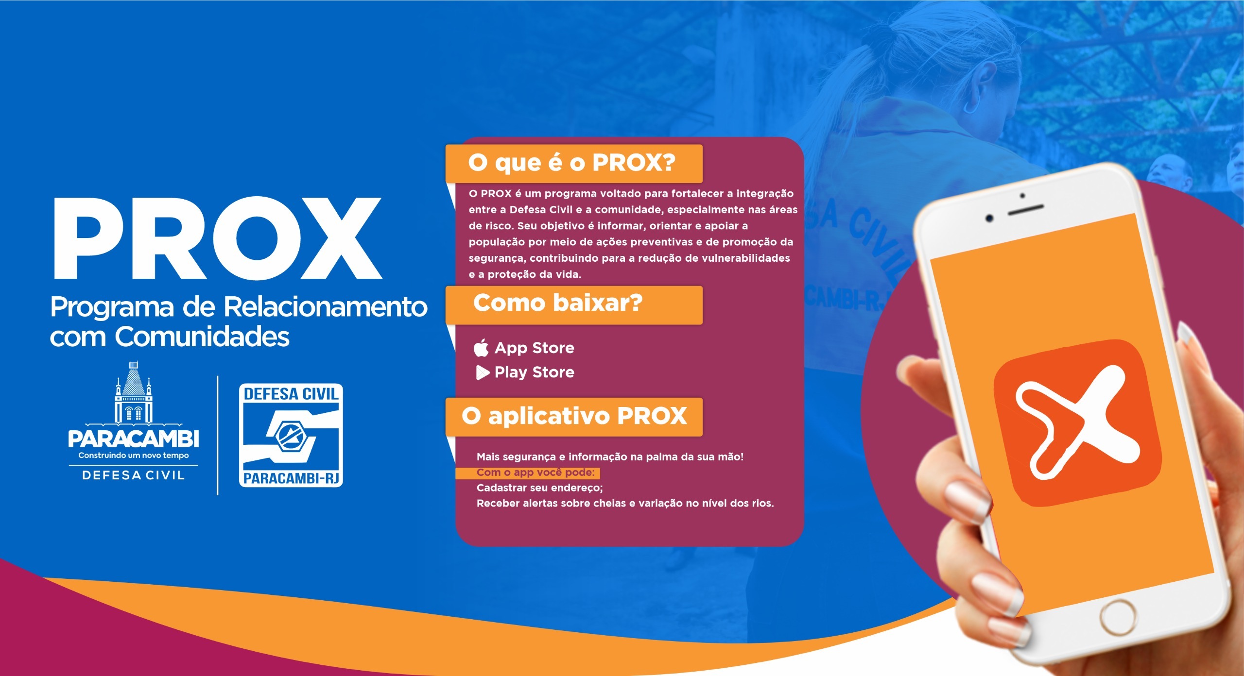 O PROX é um programa voltado para fortalecer a integração entre a Defesa Civil e a comunidade, especialmente nas áreas de risco. Seu objetivo é informar, orientar e apoiar a população por meio de ações preventivas e de promoção da segurança, contribuindo para a redução de vulnerabilidades e a proteção da vida.