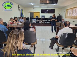 Aconteceu no dia 28 de maio de 2025 às 14 horas na Câmara Municipal de Paracambi, situada na Avenida dos Operários,186 – Centro – Paracambi – Rio de Janeiro, a 127ª Reunião do Conselho Municipal de Saúde de Paracambi, Presidida pela Sra. Michelle Ribeiro Pereira eleita como Presidente na 126ª Reunião, que teve como pautas APROVADAS: