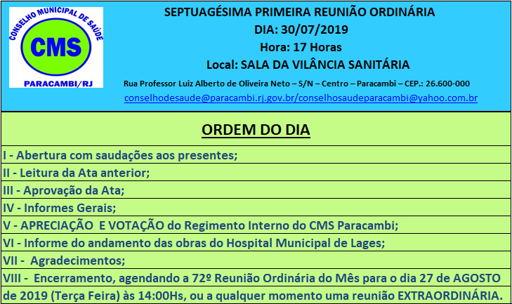 Read MoreReunião da Mesa Diretora do Conselho Municipal de Saúde de Paracambi para pautar a Reunião ordinária do mês de julho: